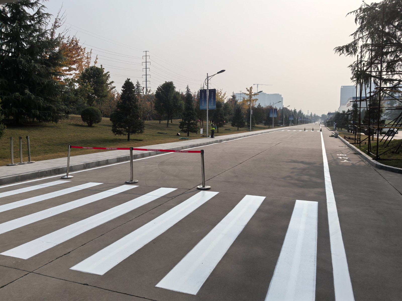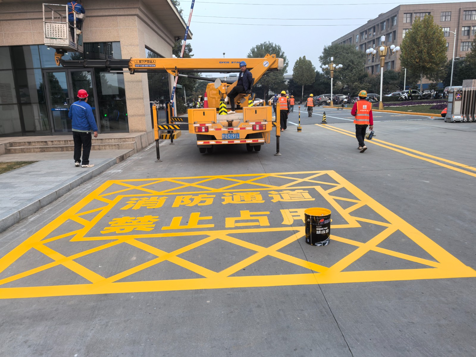 第四步使用冷噴機(jī)噴涂路面;專業(yè)的劃線設(shè)備,配合專業(yè)的師傅;